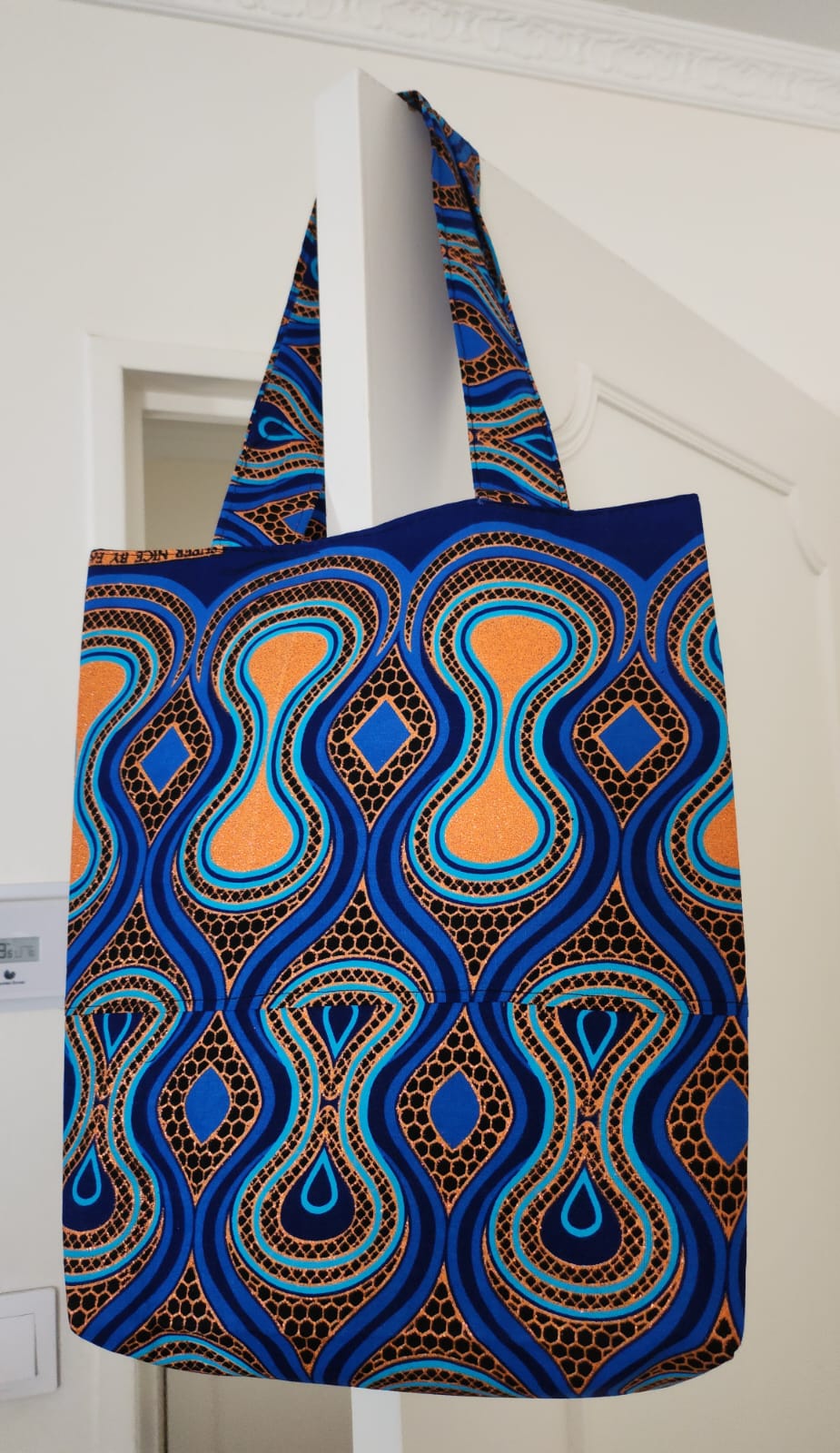 Première collection KR (Khady Rama) Découvrez les sacs uniques qui allient élégance et praticité. Conçus en tissu en coton (bleu, orange pailleté et bordeaux, rose, turquoise pailleté), thermocollés et doublés en wax ciré (très légers) mais résistants à long terme, ils attirent le regard tout en restant intemporels, de belles finitions et une fermeture aimantée pour la sécurité.
